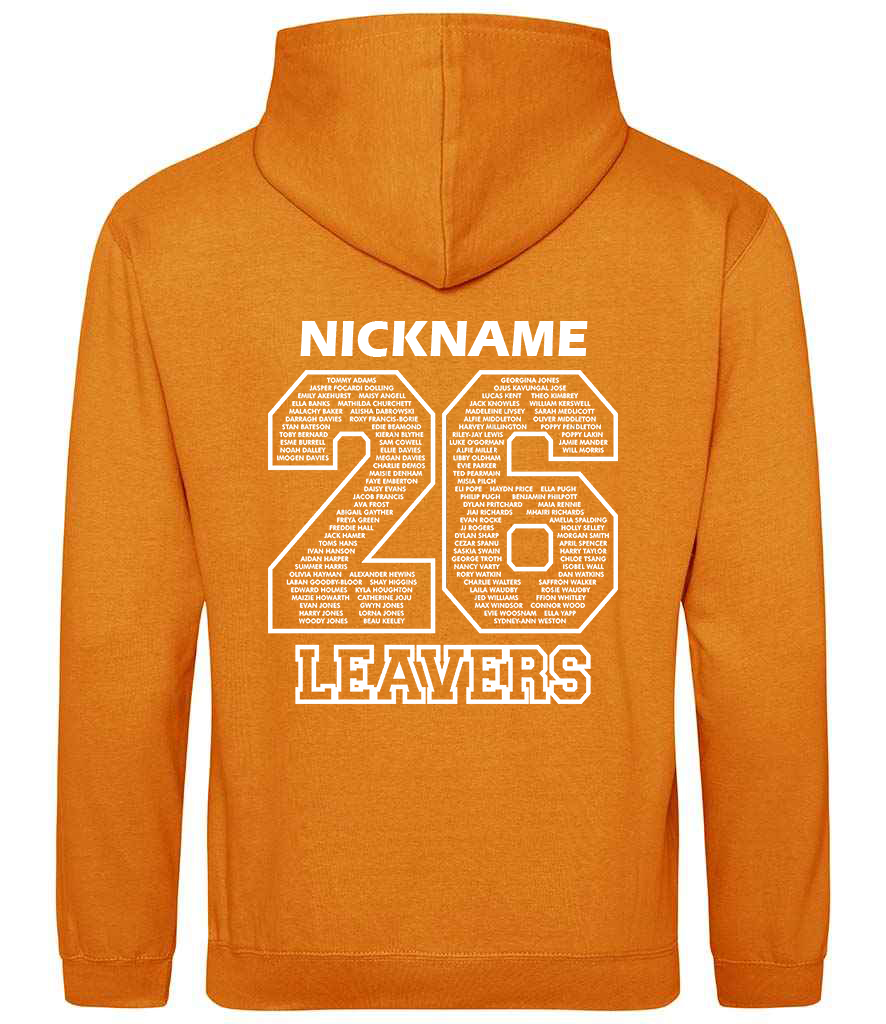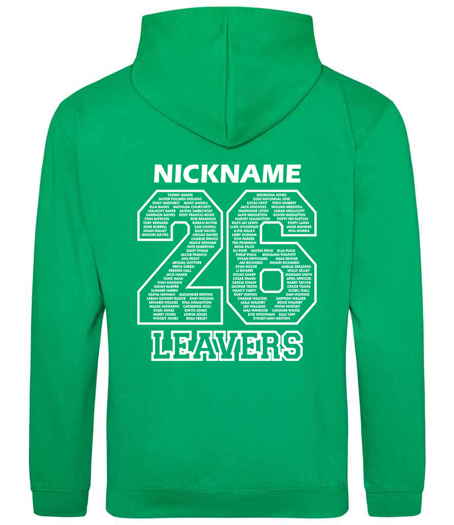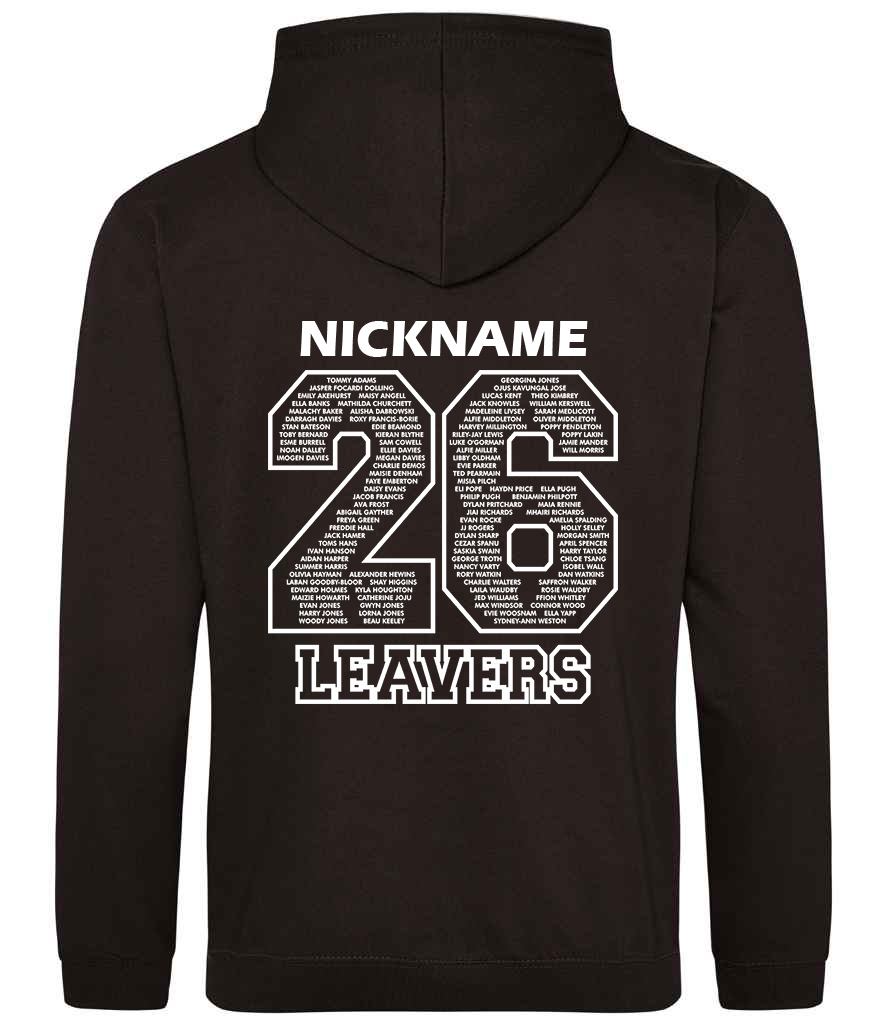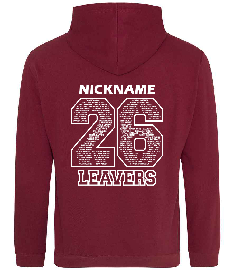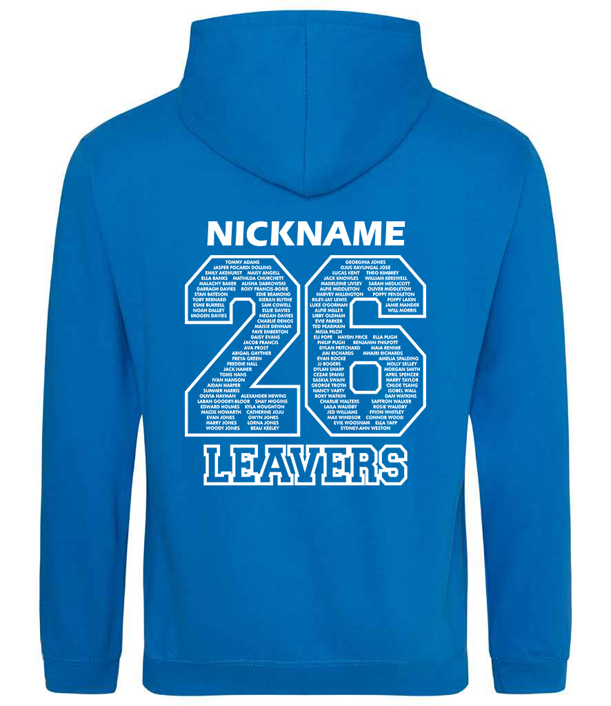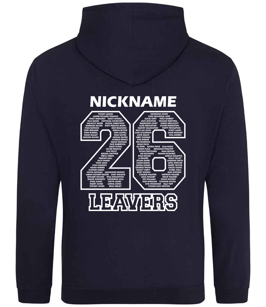 Printed '26 Leavers' design on the back plus personalised Name/Nickname above.